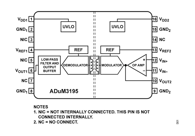 The ADuM3195 are isolation amplifiers based on Analog Devices, Inc., iCoupler® technology. The ADuM3195 have very low offset and gain error, making them ideal for many isolated voltage sensing applications.